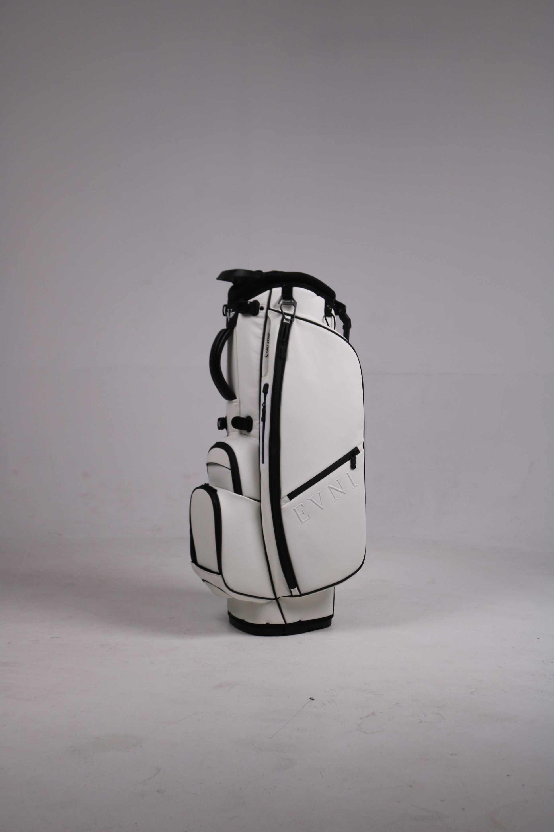 The EV2 golf bag is crafted for golfers who value quality and performance. Built with water-resistant materials, it’s designed to endure the toughest conditions. Its hybrid structure blends cart and carry features, providing versatile storage with multiple compartments and easy-access pockets.
